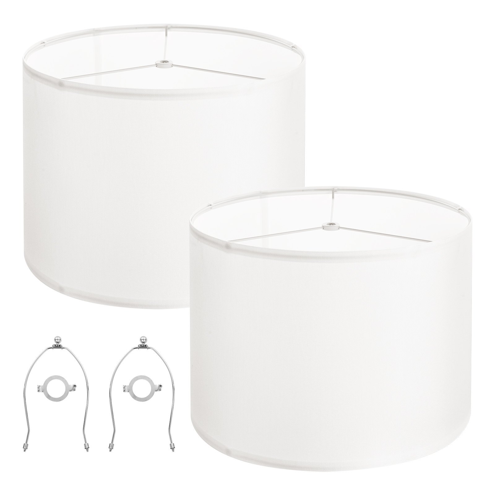 VEVOR Drum Lamp Shade 2 Set, 16 in Top x 16 in Bottom x 12 in High,Large Lampshade with Harp, Replacement Lamp Shade for Table LampsFloor Lamps Pendant Lights, Easy Assembly Required (Off-white)