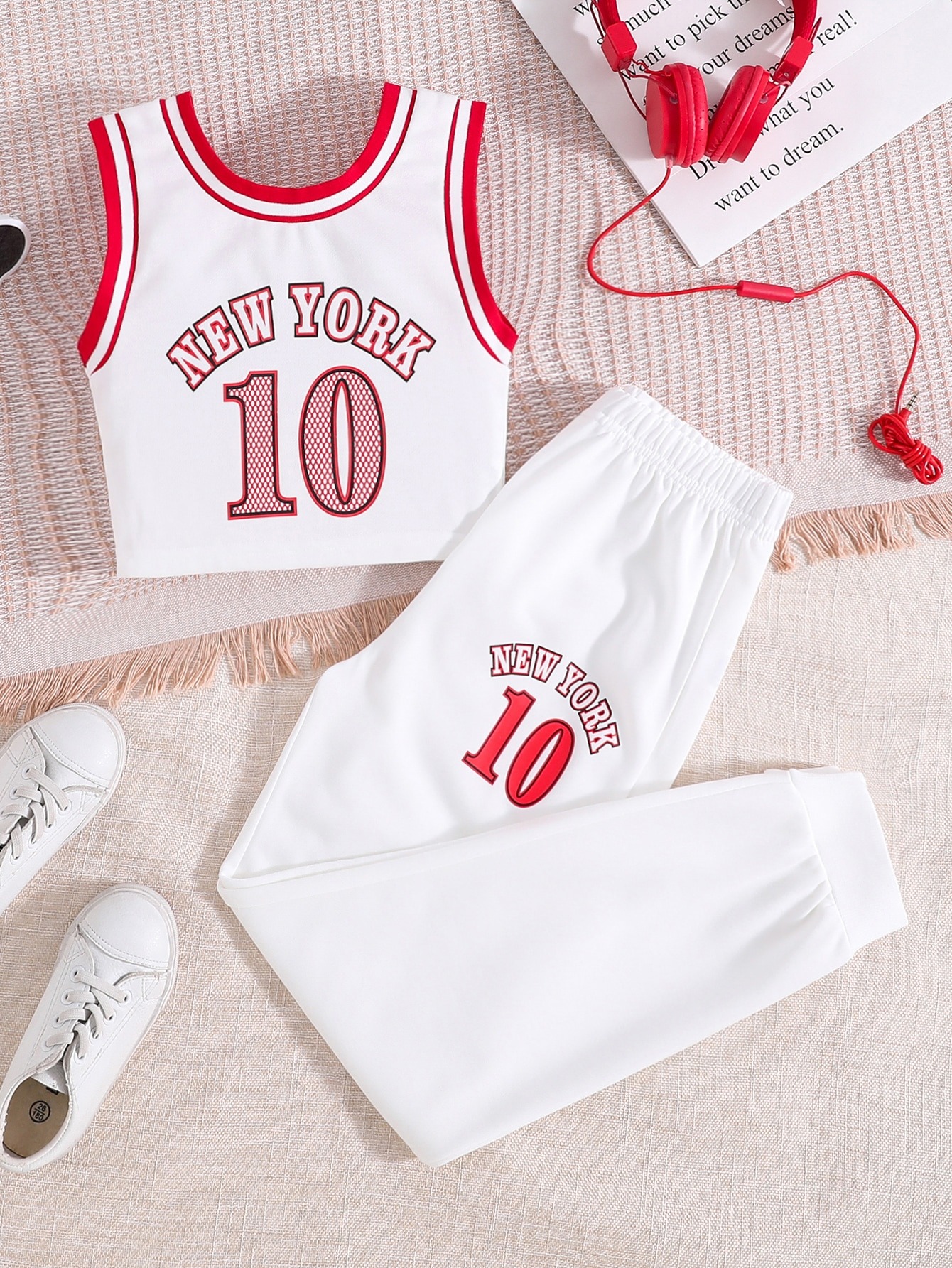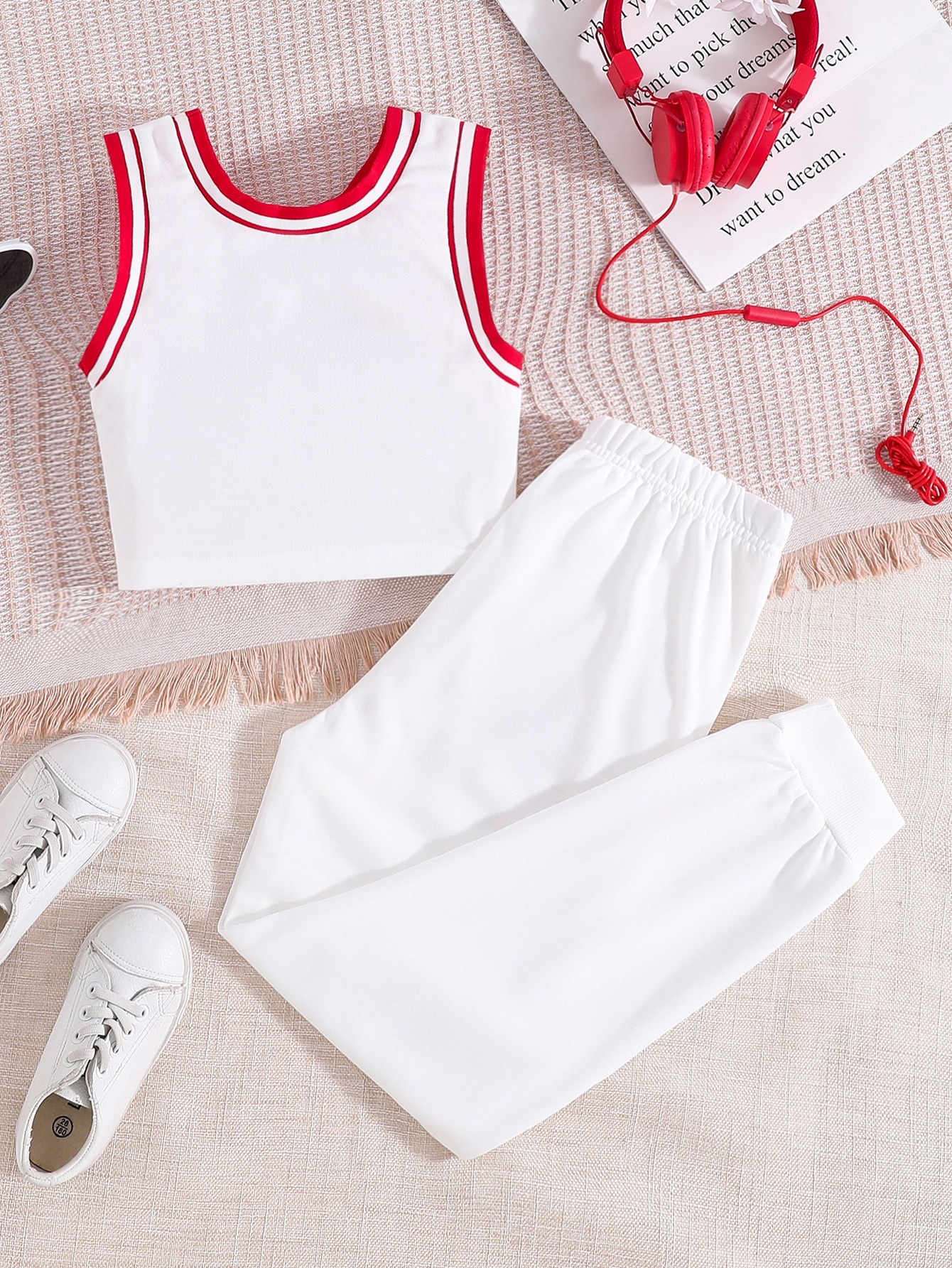 Tween Girl Letter Graphic Contrast Trim Tank Top & Sweatpants USD12.97
